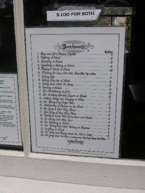The rules posted on an old school house in Old Town San Diego