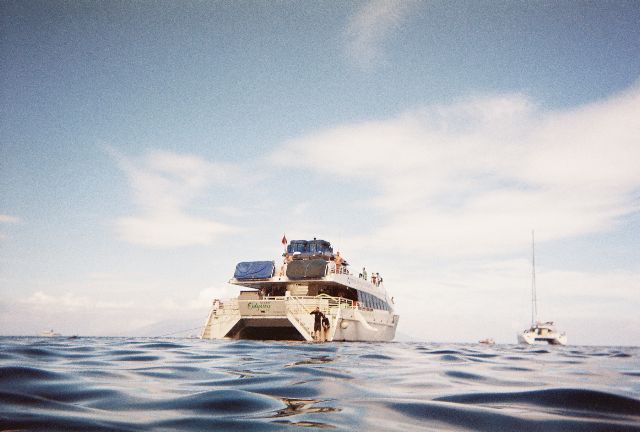 A view from the water looking at the ship we travelled to the Molokini crater....